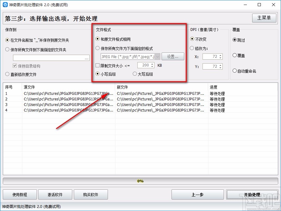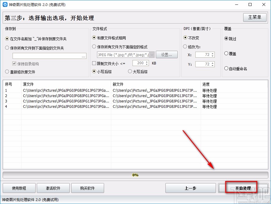 10.完成以上所有步骤后,我们在界面右下角找到“开始处理”按钮,点击该按钮就可以开始调整图片尺寸了。