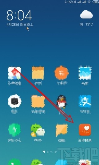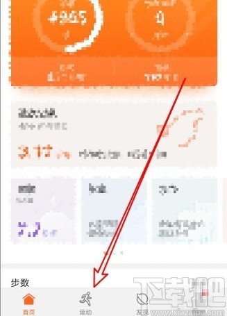 2.进入到这个运动健康界面之后,我们找到界面最下方的运动这个选项,点击切换到运动模块,如下图中所示。