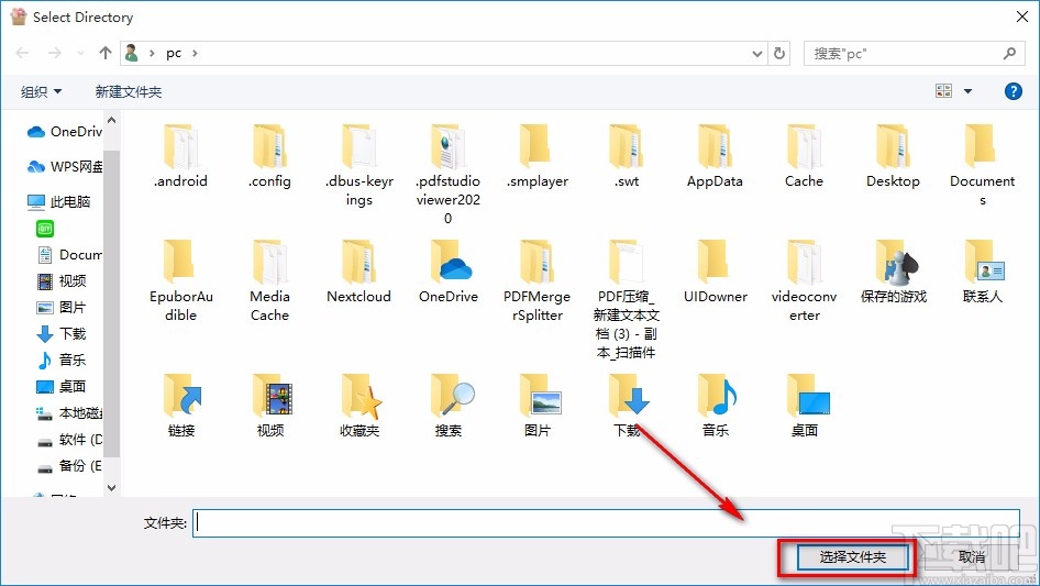 6.在文件保存路径选择页面中,我们选中文件的保存位置后,再点击页面右下角的“选择文件夹”按钮就可以了。