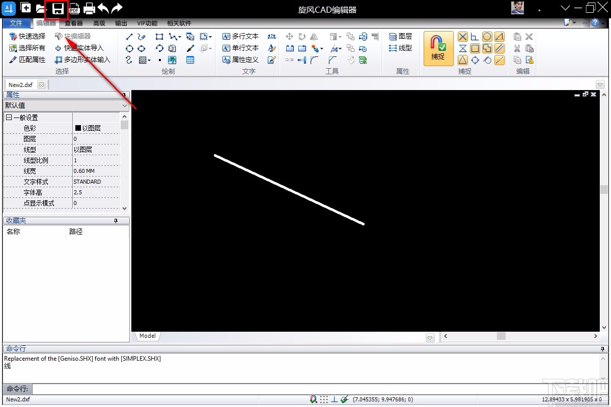 6.完成以上所有步骤后,我们在界面左上角找到下图所示的保存按钮,点击该按钮就可以将设置线宽后的CAD图纸保存在电脑中了。