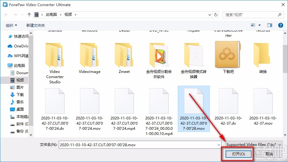 4.在文件添加页面中,我们将需要优化分辨率的视频后,再点击页面右下角的“打开”按钮就可以了。