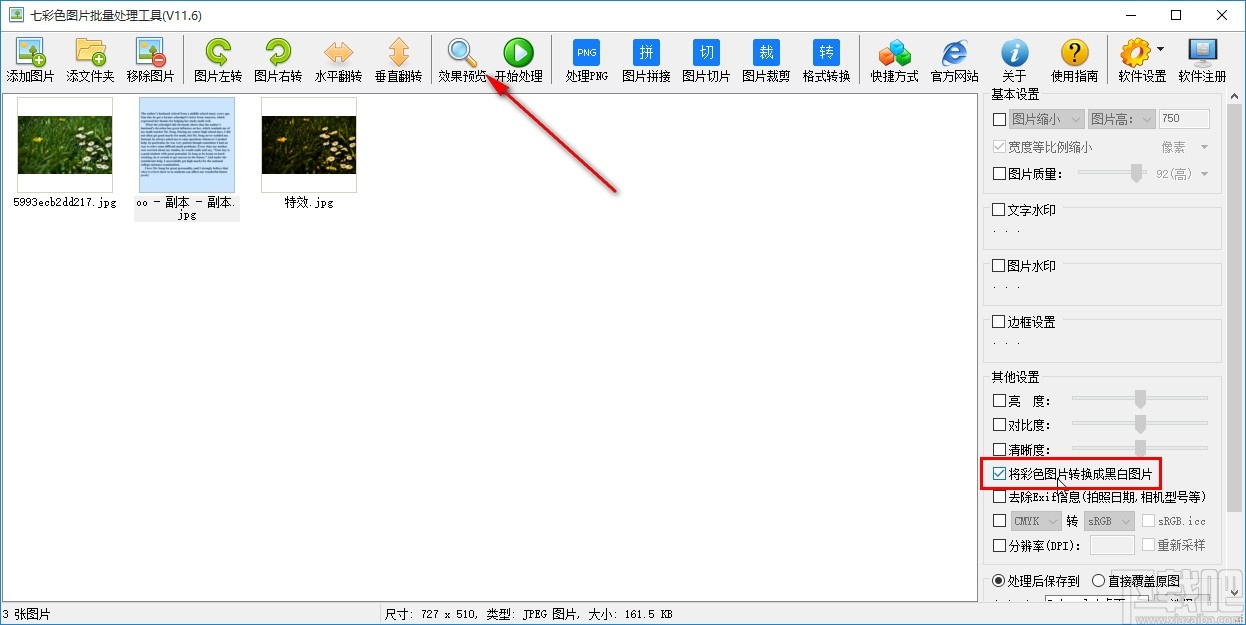 4.点击勾选这个功能之后,下一步我们就可以点击选中图片,然后再点击上方的效果预览这个图标,点击之后可以预览图片的效果。