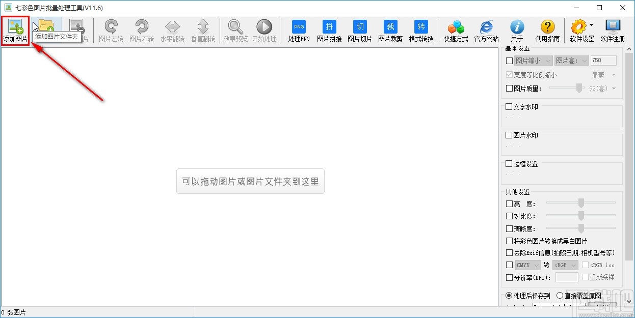 1.首先第一步我们打开软件之后,在界面的左上角找到添加图片按钮,点击之后准备添加想要处理的图片文件。