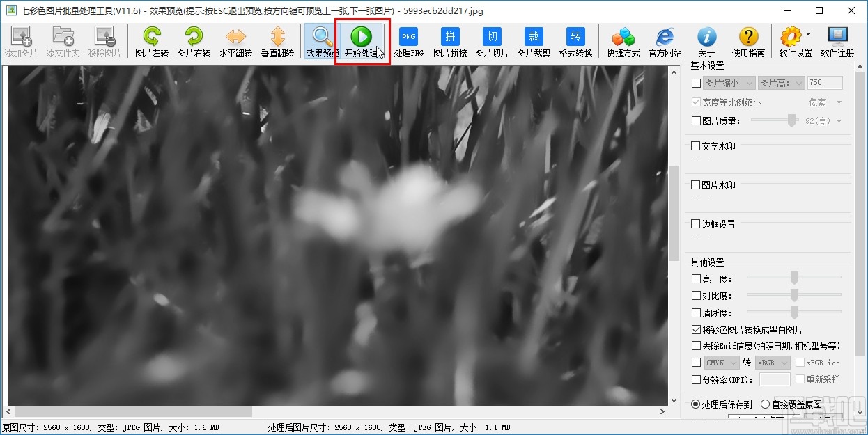 6.最后一步我们只需要点击界面上方的这个开始处理按钮就可以对添加的图片进行黑白效果的设置了,等到操作完成即可。