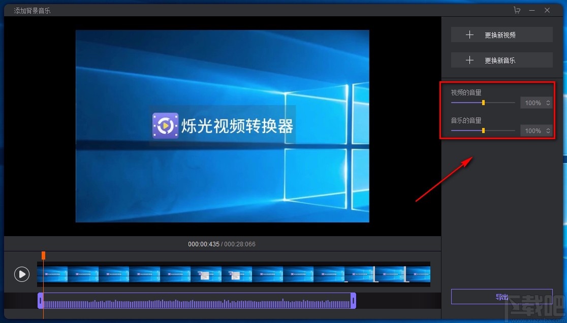 6.随后我们在界面右侧找到“视频的音量”和“音乐的音量”两个选项,分别拖动两个选项下方的小光标就可以调整这两个参数。