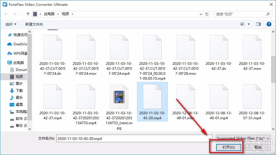 4.在文件添加页面中,我们将需要优化对比度和亮度的视频选中,再点击界面右下角的“打开”按钮就可以了。