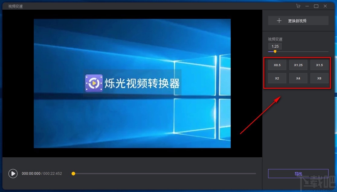 4.将视频添加到软件后,我们在界面右侧找到“视频变速”选项,其下方有一个光标尺,我们拖动其上面的小光标就可以调整视频的播放速度。