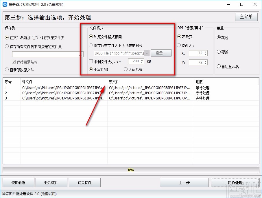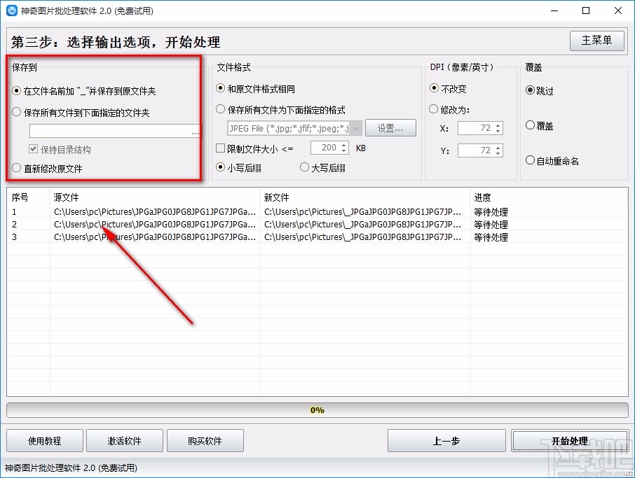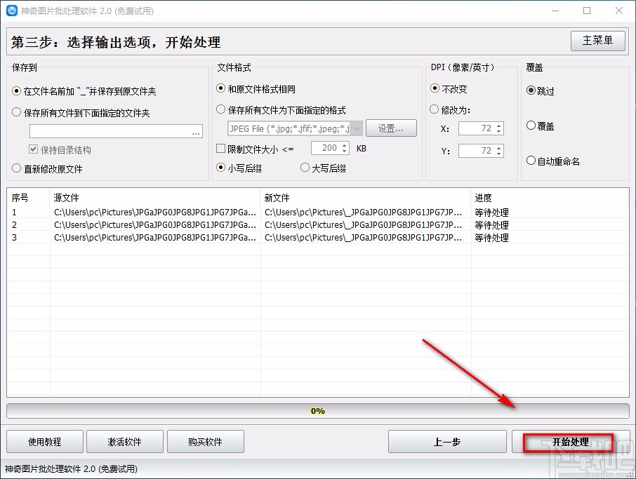 10.完成以上所有步骤后,我们在界面右下角找到“开始处理”按钮,点击该按钮就可以开始模糊图片了。