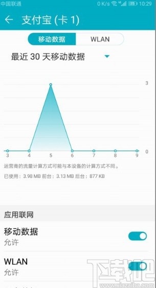 5.我们还可以在这些应用选项中找到某一个应用,点击进去之后查看该应用最近30天的流量数据使用情况,如下图中所示。
