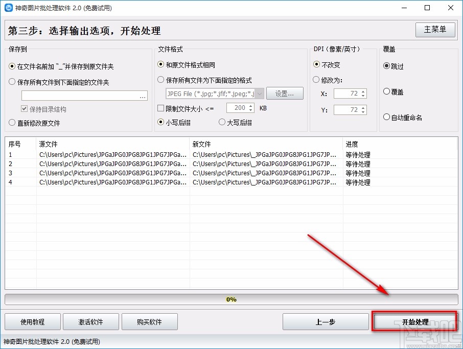 10.完成以上所有步骤后,我们在界面右下角找到“开始处理”按钮,点击该按钮就可以开始调整图片亮度了。