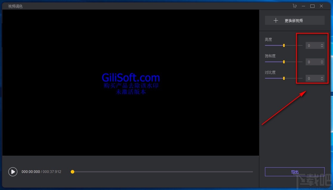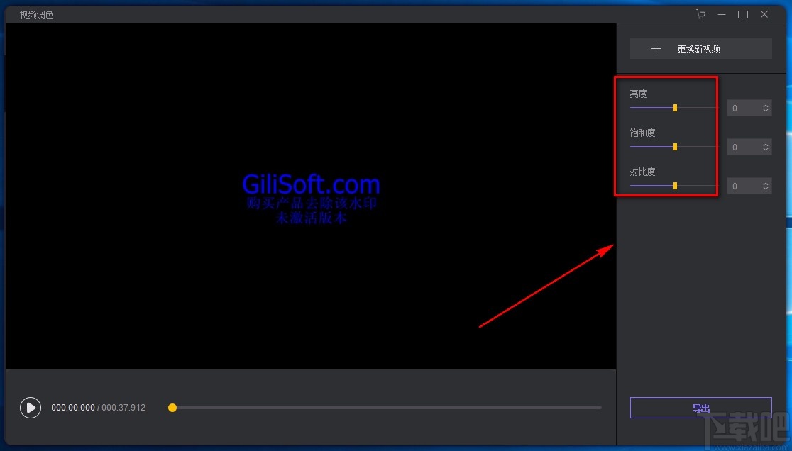 4.然后我们在界面右上方可以找到“亮度”、“饱和度”、“对比度”三个选项,分别拖动三个选项下方的小光标就能调整视频的亮度。