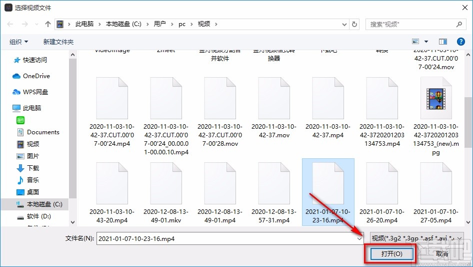 3.进入到文件添加页面后,我们在找到需要调色的视频并选中,再点击页面右下角的“打开”按钮就可以了。
