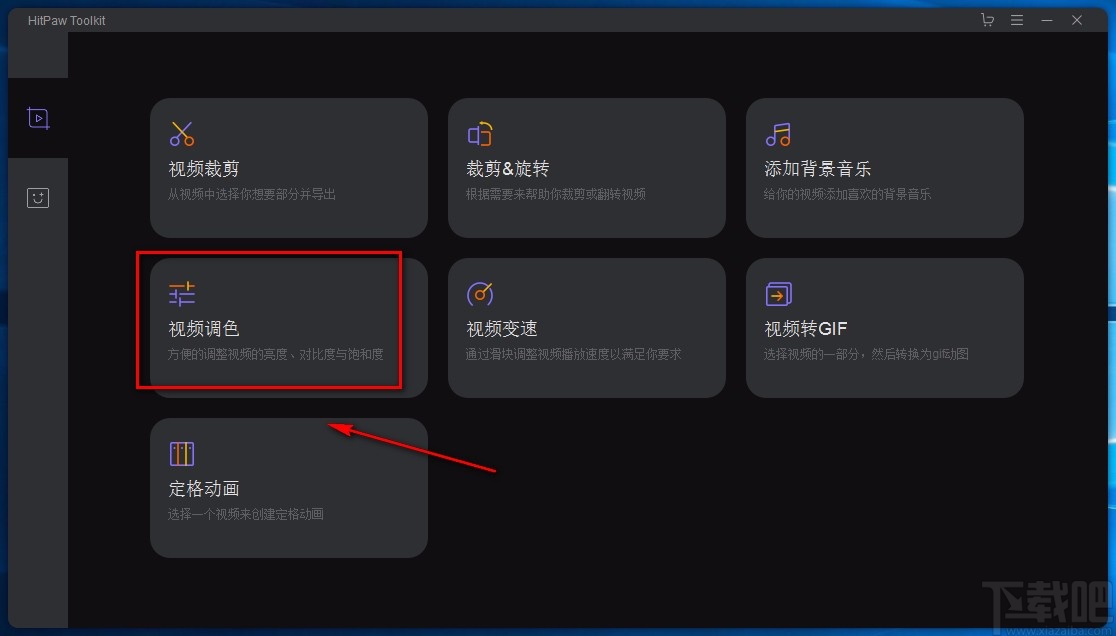 HitPaw Toolkit是一款综合性很强的视频编辑处理软件,该软件界面直观友好,所有功能都直接显示在界面上,我们使用这款软件,可以对视频进行剪切、裁剪画面、旋转等操作。很多朋友在拍摄视频后,为了使视频变得更加的精美,就会对视频进行后期处理,其中给视频调色是我们常常会做到的视频后期处理操作。而这款软件就具备给视频调色的功能,并且操作起来十分简单。那么接下来小编就给大家详细介绍一下HitPaw Toolkit给视频调色的具体操作方法,有需要的朋友可以看一看。