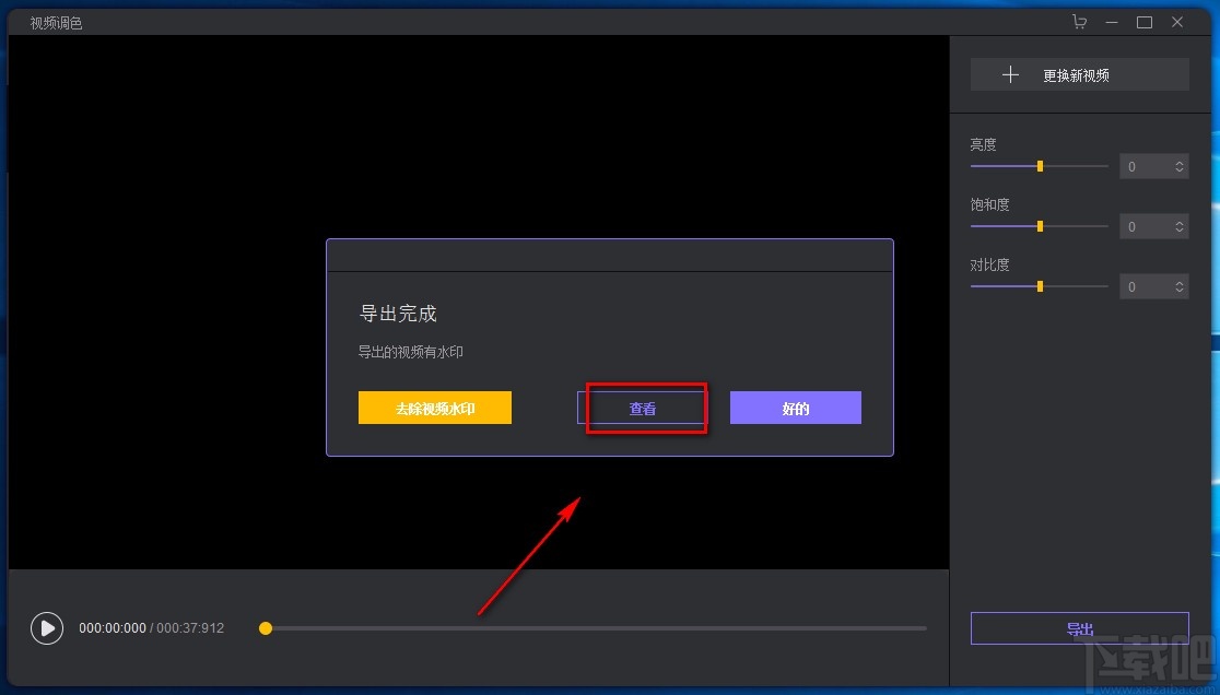 8.完成以上所有步骤后,我们就成功给视频调色了,这时候界面上会出现一个导出完成窗口,我们点击窗口中的“查看”按钮就可以查看调色后的视频。