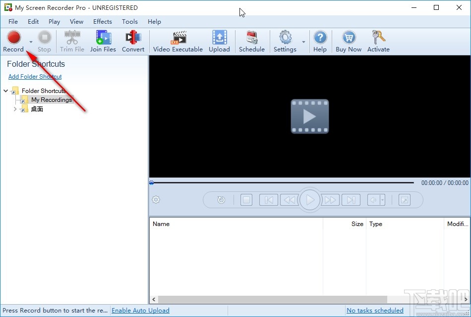1.首先第一步我们打开软件之后,在软件界面的左上方找到Record这个功能按钮,然后点击这个按钮准备开始录制。