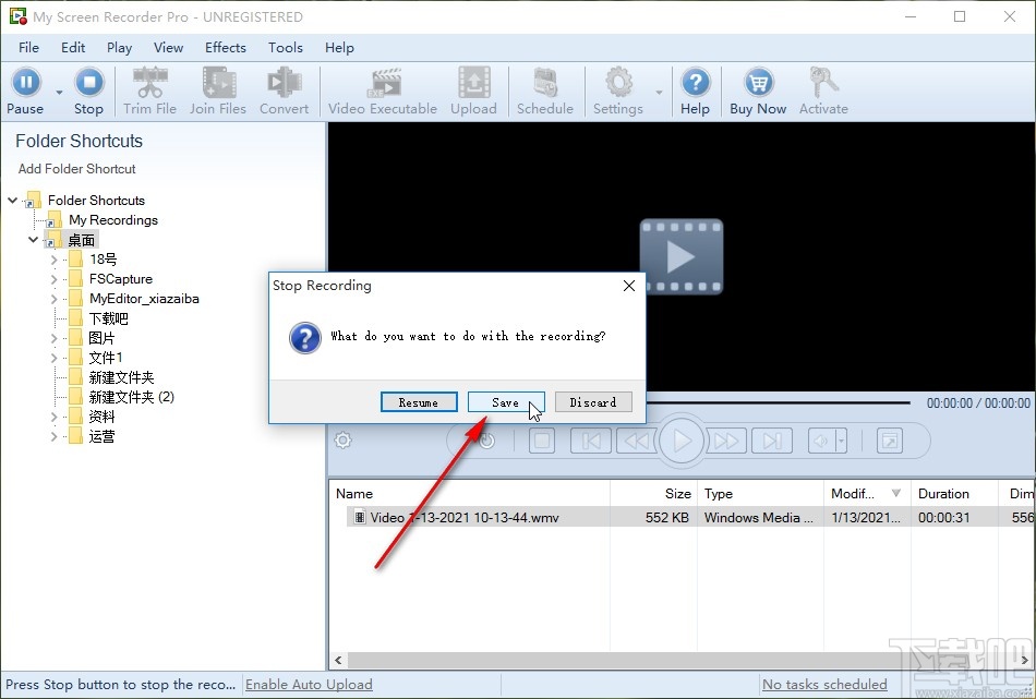 6.点击停止录制之后会出现下图所示的界面,在这个界面中我们找到Save这个保存按钮,点击这个保存按钮之后打开保存选项界面。
