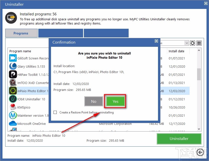 4.随后界面上就会出现一个窗口,我们在窗口中找到“Yes”按钮,点击该按钮就可以开始卸载软件了。