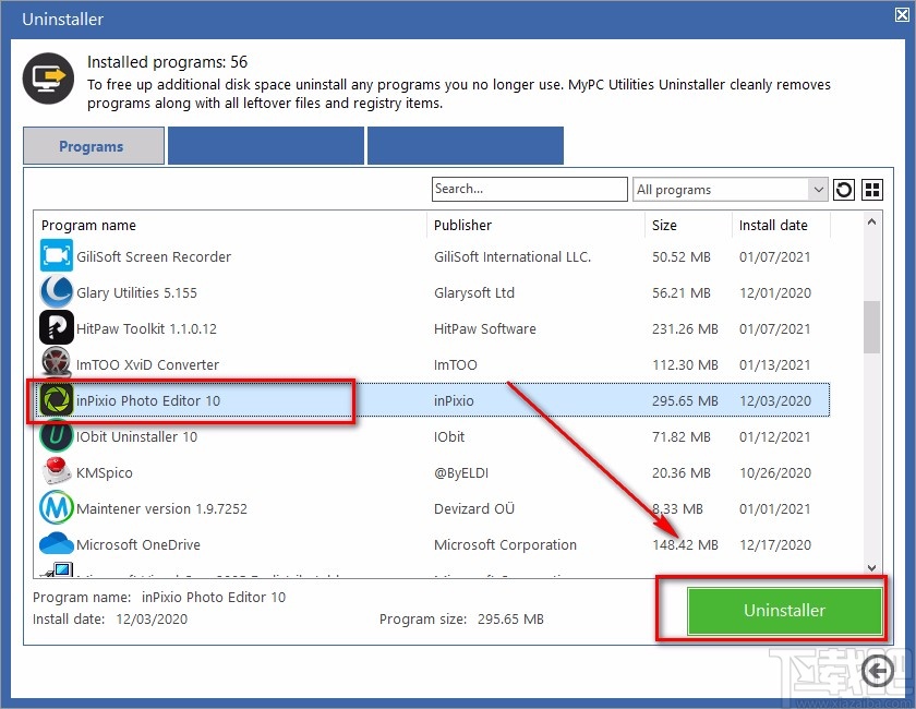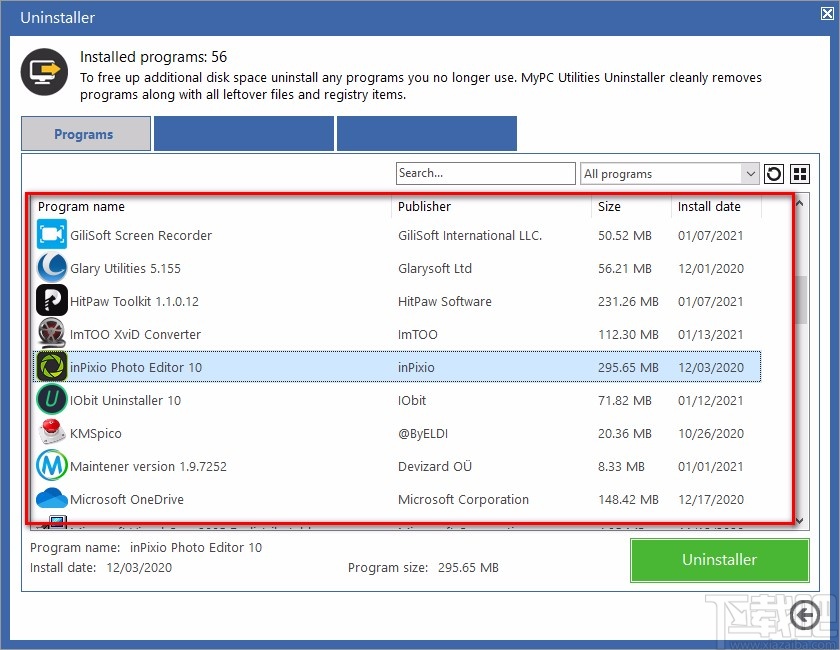 3.接着我们在界面上将需要卸载的软件选中,再点击界面右下角的“Uninstaller”按钮即可。