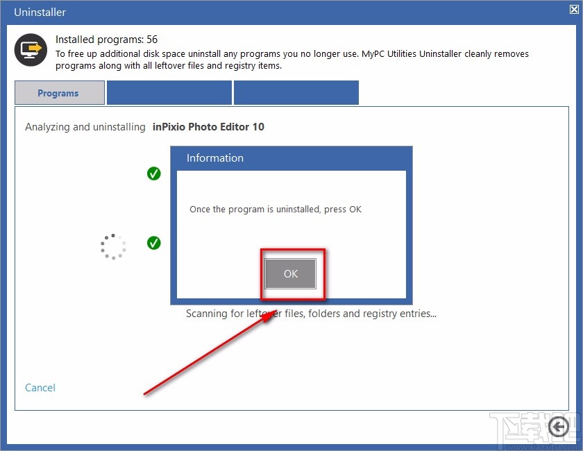 5.软件卸载完毕后,界面上会出现一个窗口,提示我们软件已经卸载完毕,这时候点击窗口中的“OK”按钮就可以了。