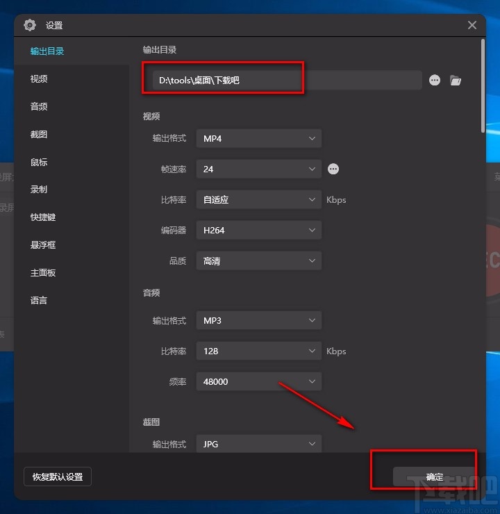 5.完成以上所有步骤后,我们在界面上方可以看到“输出目录”下方的文本框中显示的就是刚刚设置的保存位置了,这时候点击窗口右下角的“确定”按钮就可以了。