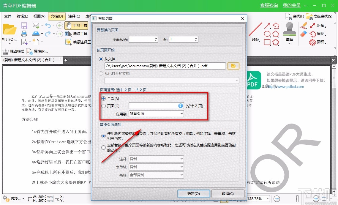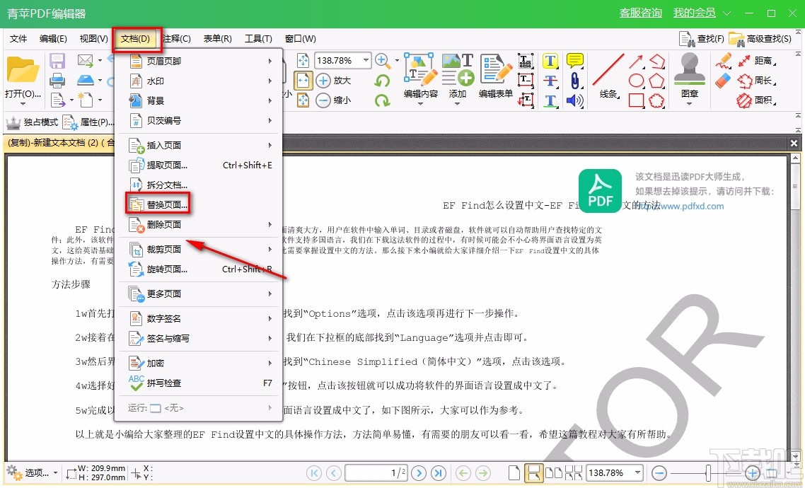 以上就是小编给大家整理的青苹PDF编辑器替换页面的具体操作方法,方法简单易懂,有需要的朋友可以看一看,希望这篇教程对大家有所帮助。