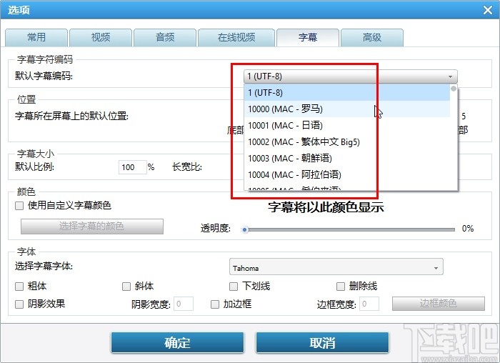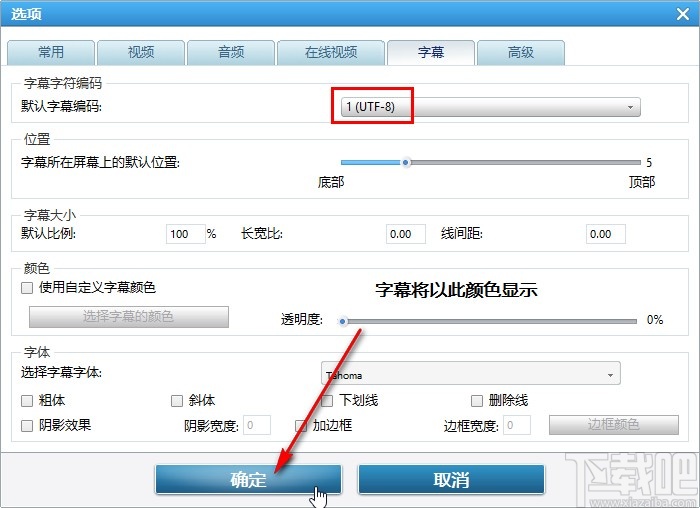 5.最后选择好自己想要使用的默认字幕编码之后,在设置界面最下方点击确定按钮,保存修改操作就可以了。