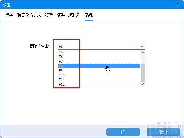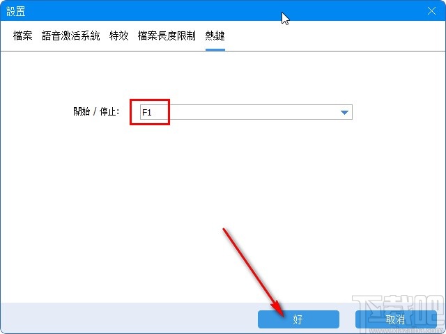 5.点击选用自己想要的快捷键选项之后,如下图中所示,点击下方的“好”这个按钮确认快捷键的设置即可,比如下图中设置为F1,那么我们就可以通过F1键来控制开始和停止录制了。
