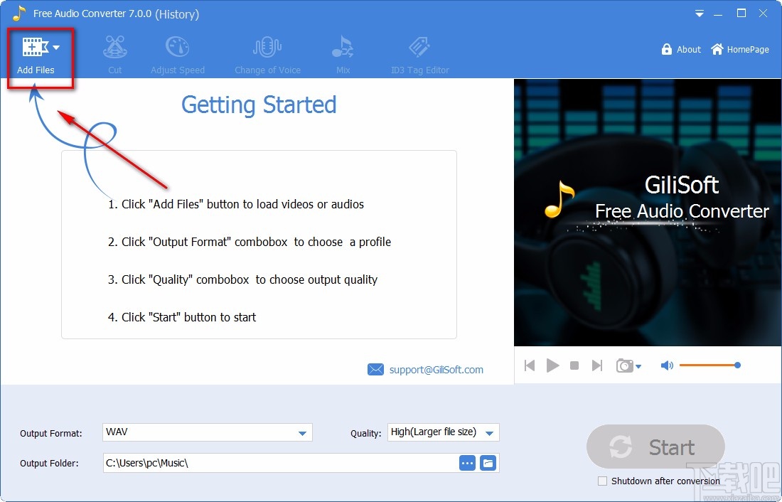 Free Audio Converter是一款十分优秀的音频格式转换软件,该软件界面时尚美观,主打音频格式转换功能,能够帮助用户将主流的音频格式进行相互转换,同时还可以对音频进行剪切等操作。相信大家都知道,音频格式不同,所得到的音频质量也有所差别。所以在日常生活中,很多朋友为了得到更高质量的音频文件,会使用这款软件来转换音频格式。鉴于有的朋友不会对其操作,那么接下来小编就给大家详细介绍一下Free Audio Converter转换音频格式的具体操作方法,有需要的朋友可以看一看。