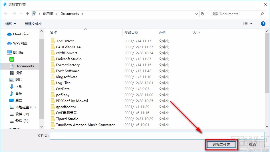 5.在文件保存路径选择页面中,我们选中文件的保存位置后,再点击页面右下角的“选择文件夹”按钮就可以了。