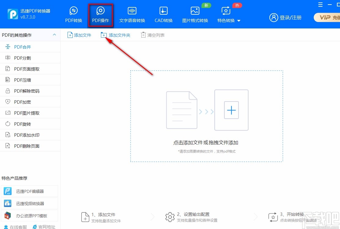 1.首先打开软件,我们在界面上方找到“PDF操作”选项,点击该选项就可以进入到PDF操作页面。