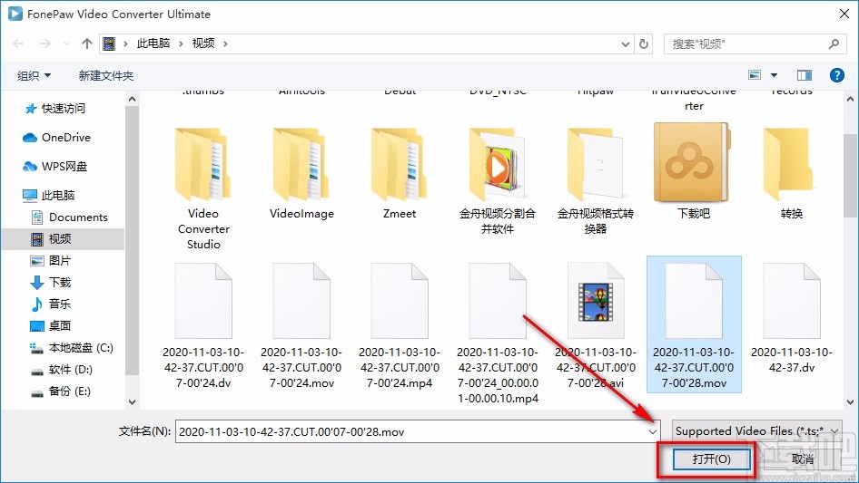 4.随后在文件添加页面中,我们选中需要转为GIF图片的视频后,再点击页面右下角的“打开”按钮就可以了。