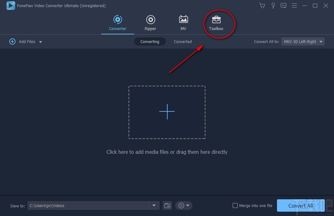 1.首先打开软件,我们在界面上方找到“Toolbox”选项,点击该选项就能进入到Toolbox页面。