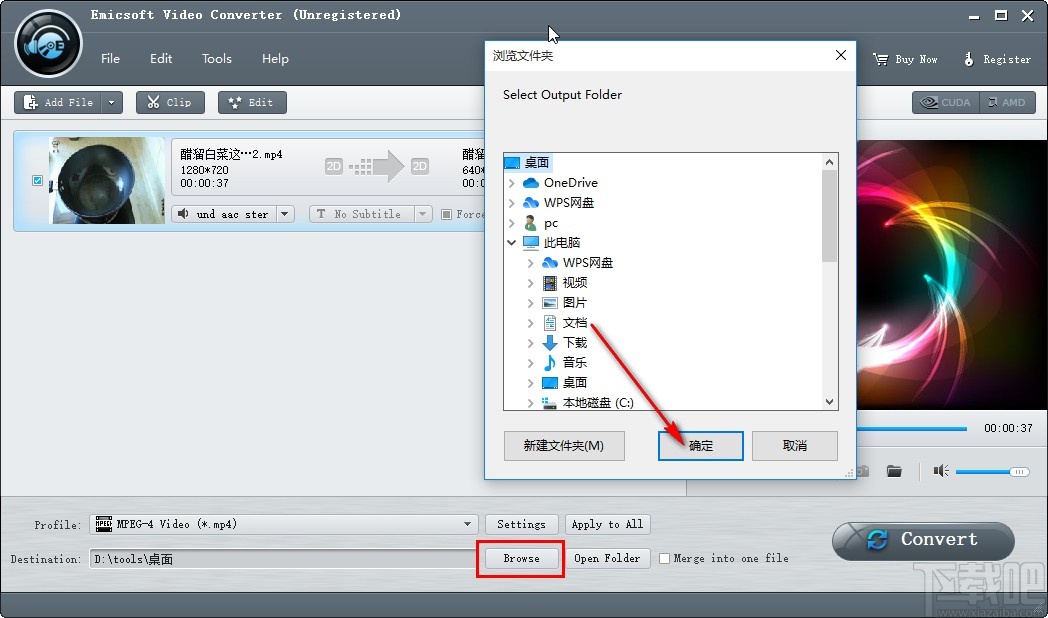 6.点击应用按钮之后回到软件主界面,在主界面中找到Browse这个浏览按钮,点击之后在打开的浏览界面中根据自己的需求设置输出文件夹。
