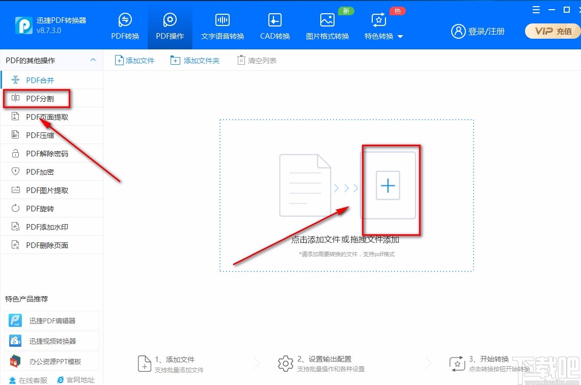 迅捷PDF转换器是一款专业优秀的PDF文件格式转换以及编辑处理软件,该软件主打PDF格式转换功能,可以帮助用户将PDF与其他多种文件格式进行相互转换,同时还能对PDF文件进行分割、合并、加密等处理。在日常生活中,我们常常需要传输一些PDF文件给他人,如果PDF文件的体积过大,就会影响文件的传输速度,甚至会出现无法传输的情况。这时候就可以使用这款软件分割PDF文件,之后再将其传输给他人。那么接下来小编就给大家详细介绍一下迅捷PDF转换器分割PDF的方法,有需要的朋友可以看一看。