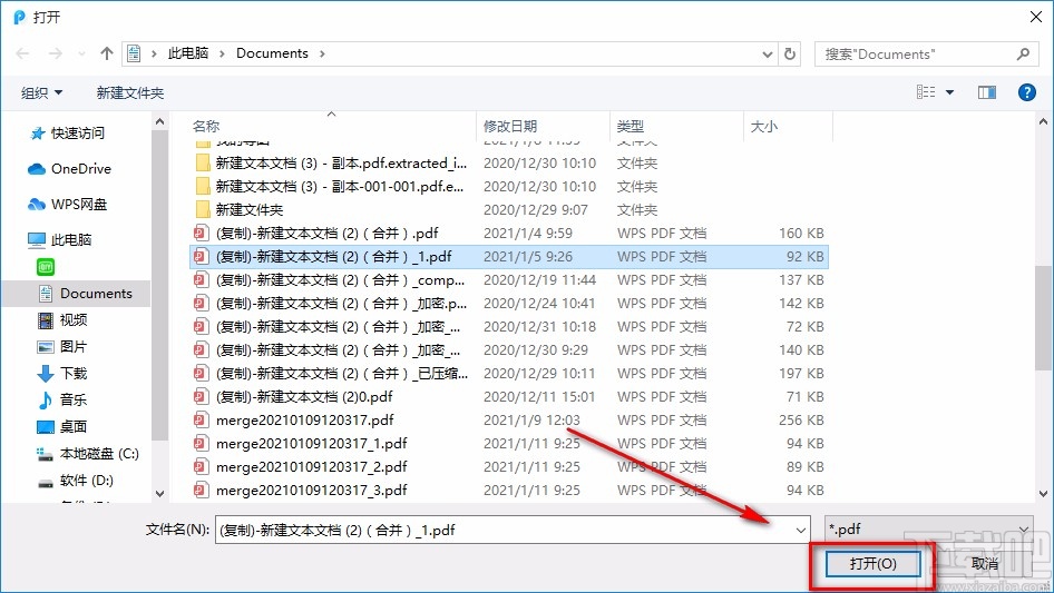 3.在文件添加页面中,我们选中需要进行分割操作的PDF文件后,再点击页面右下角的“打开”按钮就可以了。