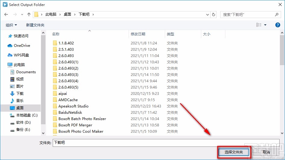 4.接下来就会进入到文件保存路径选择页面,我们在页面中选择好视频的保存位置后,再点击页面右下角的“选择文件夹”按钮就可以了。