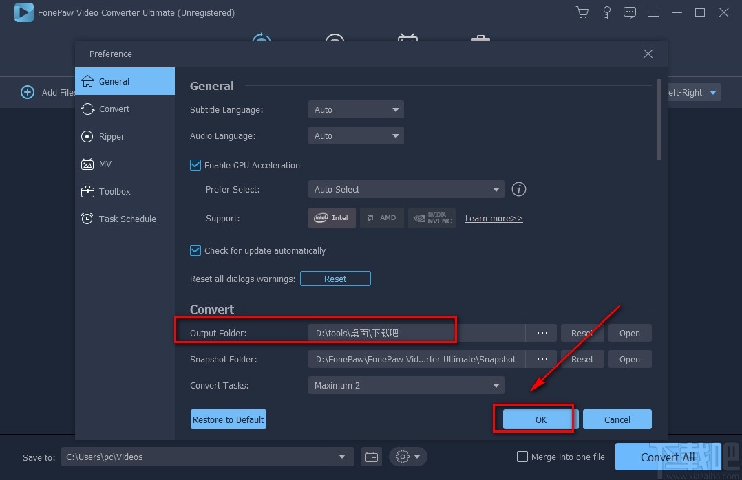 以上就是小编给大家整理的FonePaw Video Converter设置默认保存路径的具体操作方法,方法简单易懂,有需要的朋友可以看一看,希望这篇教程对大家有所帮助。
