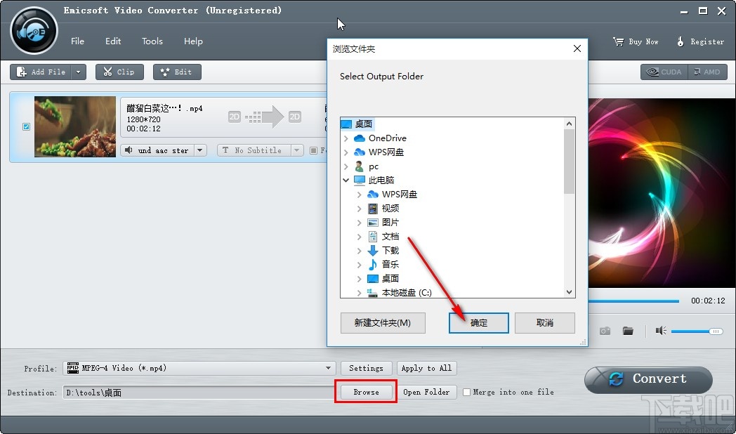 6.点击应用按钮之后保存对视频的调整,然后回到主界面,点击下方的Browse这个浏览按钮,点击之后在出现的界面中根据自己的需求选择输出保存路径。