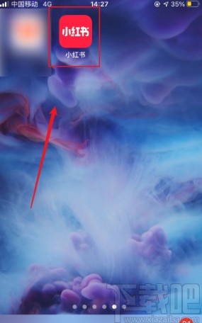 1.首先我们打开手机之后,找到小红书应用图标,点击这个图标之后进入到应用的主界面当中。