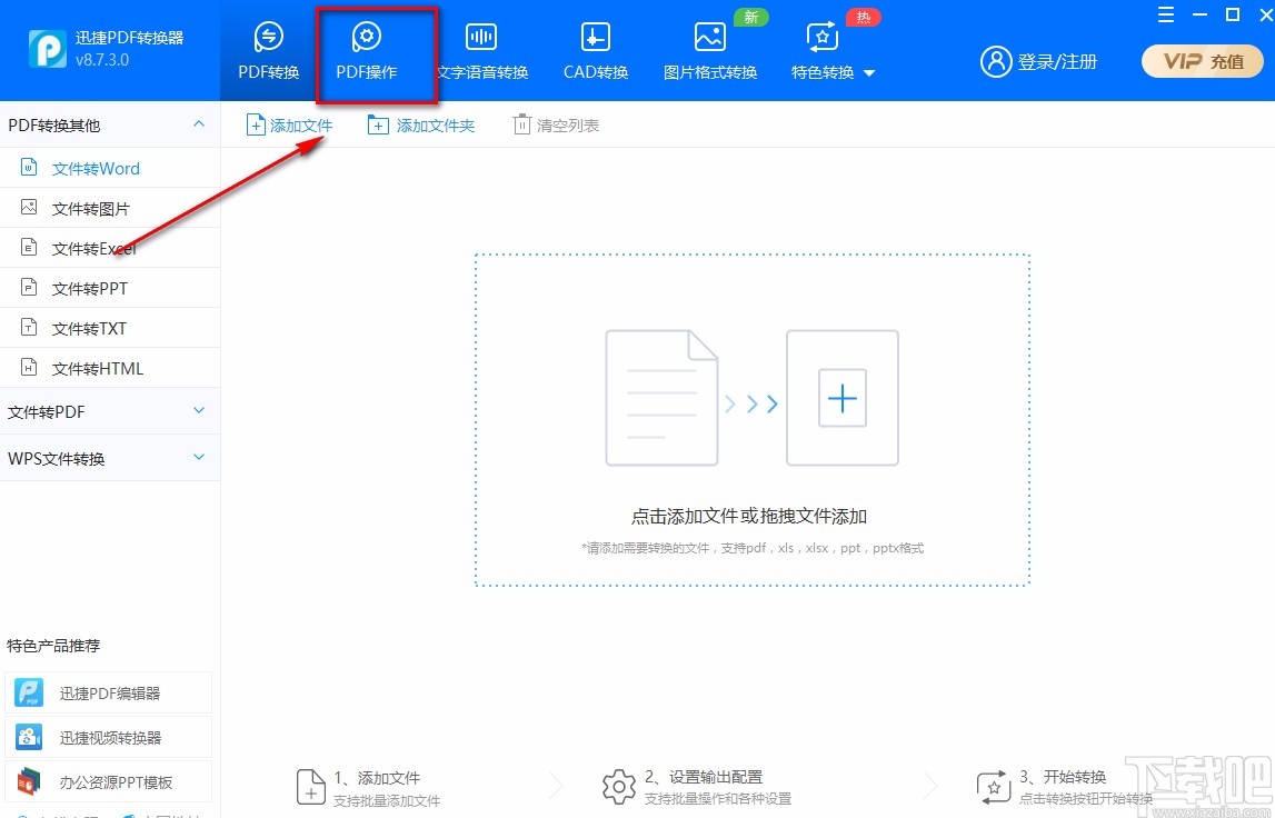 1.首先打开软件,我们在界面上方找到“PDF操作”选项卡,点击它再进行下一步操作。
