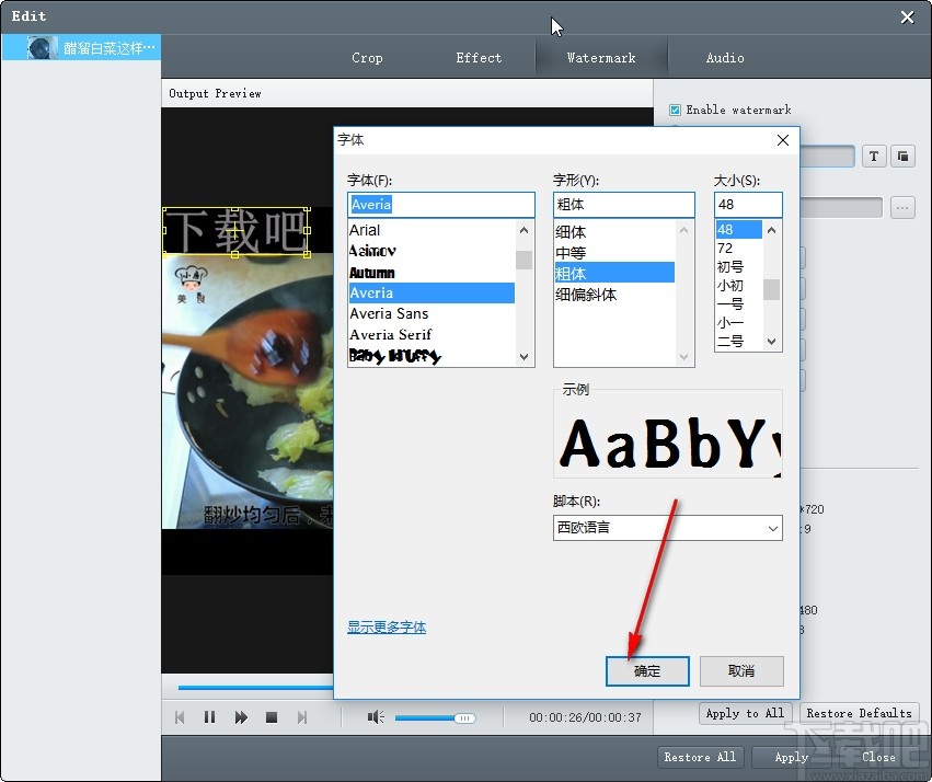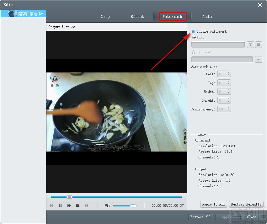 4.打开这个编辑视频的功能界面之后,在界面中找到Watermark这个水印选项,切换到水印界面之后我们勾选右边“Enable watermark”这个选项。