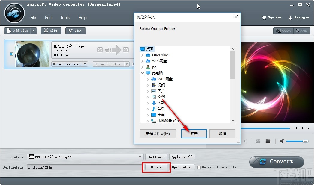 9.应用这个修改之后我们在出现的软件主界面中,找到Browse这个浏览按钮,在出现的选择输出路径中可以根据自己的需求来选择输出保存路径。
