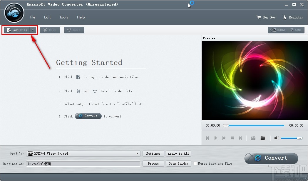 1.首先第一步我们打开软件之后,在软件界面左上角找到Add File这个添加文件按钮,点击之后准备添加想要使用的文件。