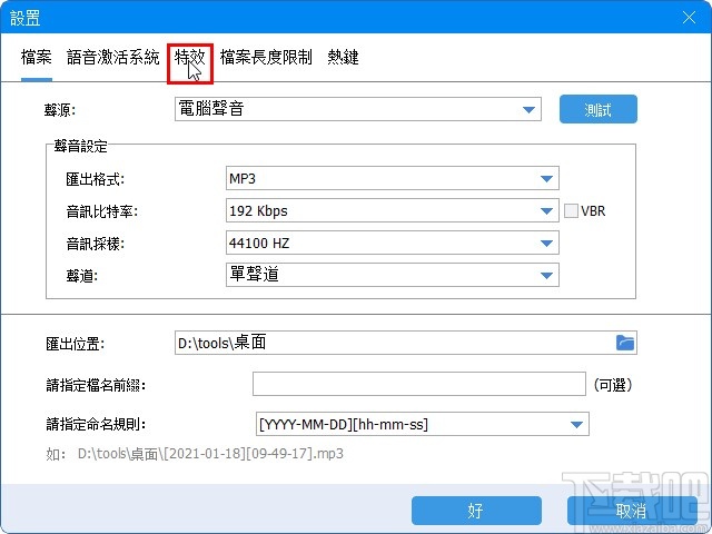 2.点击这个打开软件的设置界面之后,我们在界面的上方找到特效这个选项,点击这个选项之后进入到特效设置界面。