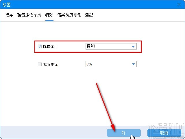 5.最后勾选降噪模式并且选择好降噪级别之后,我们点击软件界面下方的“好”这个按钮,保存设置的修改就可以了。