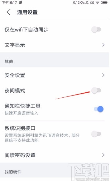 4.随后在设置页面中,我们找到“夜间模式”选项,该选项后面有一个开关按钮,点击该按钮使其处于打开状态。