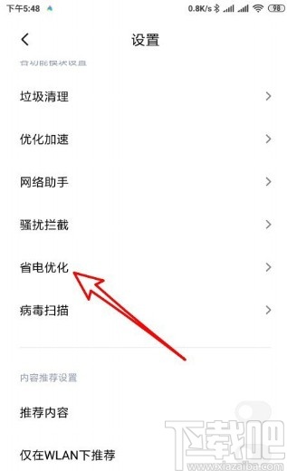 3.下一步点击进入到这个设置界面之后,我们找到省电优化这个选项,点击进入到省电优化设置界面。