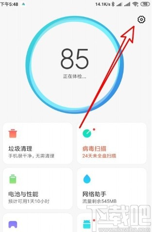 2.点击进入到这个应用主界面之后,在界面的右上角找到设置图标,如下图中所示,点击进入到设置界面当中。