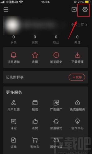 1.首先第一步我们打开今日头条app之后,在个人中心界面的右上角,找到设置图标,点击进入到设置界面当中。