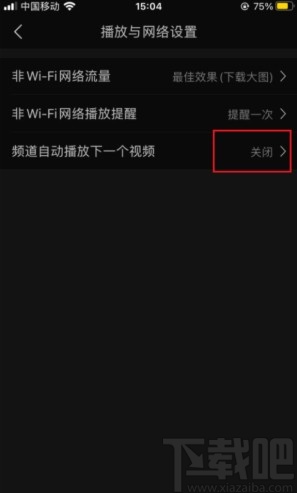 3.点击进入到播放与网络设置这个界面之后,在界面中就可以看到有“频道自动播放下一个视频”这个功能了,点击进入到其中准备进行设置。